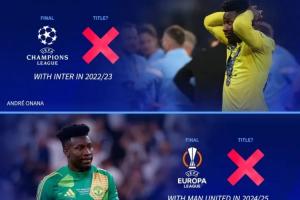 16/17賽季,奧納納隨阿賈克斯闖入歐聯(lián)決賽,最終不敵曼聯(lián);22/23賽季,奧納納隨國米闖入歐冠決賽,最終不敵曼城;本賽季,奧納納隨曼聯(lián)闖入歐聯(lián)決賽,最終不敵熱刺。