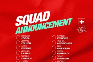 體育資訊5月23日訊 瑞士國家隊將在6月份前往美國進行兩場友誼賽,新一期國家隊的大名單在本周四公布,其中三月份缺席的扎卡、阿坎吉回歸。