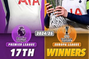 本賽季歐聯(lián)杯決賽,熱刺擊敗曼聯(lián),以英超第17的排名奪得歐聯(lián)冠軍,大幅刷新賽事紀(jì)錄。