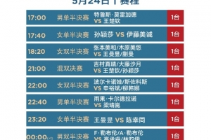 體育資訊5月24日訊 多哈世乒賽今天將繼續(xù)展開爭奪,孫穎莎和王楚欽將在混雙項(xiàng)目沖擊三連冠。此外,王楚欽、孫穎莎、王曼昱、陳幸同、梁靖崑還將出戰(zhàn)單打半決賽的比賽。女雙賽場(chǎng),王曼昱搭檔蒯曼沖擊一張決賽門票。