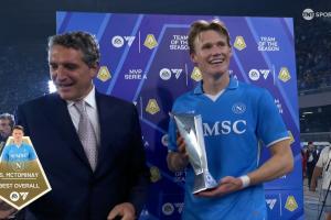 體育資訊05月24日訊 意甲第38輪,那不勒斯2-0擊敗卡利亞里,鎖定意甲冠軍。上半場(chǎng)麥克托米奈打入凌空側(cè)鉤,幫助球隊(duì)先開(kāi)紀(jì)錄,同時(shí)也成功當(dāng)選本賽季意甲MVP。