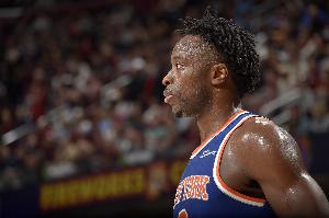 上半場,尼克斯球員阿努諾比手感冰涼,打了19分鐘9投1中,三分4中1、罰球2中2拿到5分3籃板1助攻。