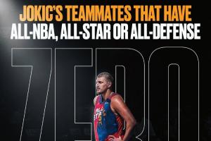 約基奇進入聯(lián)盟以來一直都在掘金效力,這10年間他沒有任何一位當賽季入選全明星/最佳防守陣容/最佳陣容的隊友。