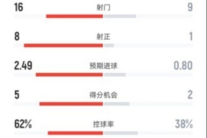 全場(chǎng)比賽數(shù)據(jù)如下:
