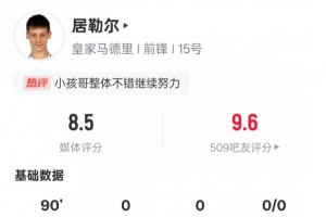 體育資訊5月25日訊 西甲第38輪,皇馬2-0皇家社會(huì)。本場(chǎng)比賽,居勒爾首發(fā)出戰(zhàn),1射門(mén)1射正,2次過(guò)人成功,送出3次關(guān)鍵傳球,還有3次搶斷,評(píng)分8.5全場(chǎng)最高。