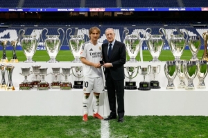 在皇馬2-0皇家社會(huì)的比賽之后,皇馬為今夏離隊(duì)的莫德里奇安排了致敬儀式,這位皇馬傳奇球星與俱樂(lè)部主席一同站在草坪上,展示了他在效力皇馬13年間贏得的28座冠軍獎(jiǎng)杯。