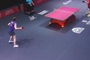 體育資訊5月25日訊 多哈世乒賽女單決賽第6局,孫穎莎局分3-2小分10-9領(lǐng)先時(shí),王曼昱極限回球擦邊,挽救賽點(diǎn)!