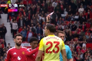 體育資訊5月26日訊 英超收官戰(zhàn),力爭(zhēng)進(jìn)軍下賽季歐冠的維拉客場(chǎng)對(duì)陣曼聯(lián)。上半場(chǎng)尾聲階段馬丁內(nèi)斯出擊放倒霍伊倫,被主裁判直紅罰下。最終維拉0-2不敵曼聯(lián),無(wú)緣歐冠資格。