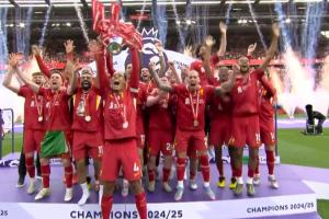 體育資訊05月26日訊 隊(duì)長范迪克捧起利物浦第20座頂級聯(lián)賽冠軍獎杯,這也是利物浦第2座英超聯(lián)賽冠軍獎杯,有球迷在現(xiàn)場的第一次!