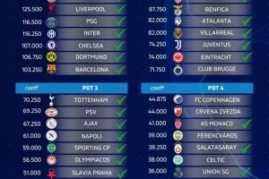 體育資訊05月26日訊 凌晨五大聯(lián)賽全部收官,下賽季的36個(gè)歐冠席位已經(jīng)確定29隊(duì),媒體FootRankings根據(jù)歐戰(zhàn)積分算出了29隊(duì)的分檔情況。