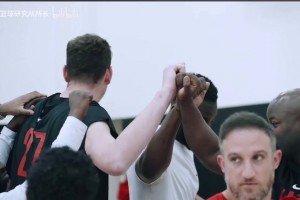 廣東全運(yùn)男籃一起為杜鋒慶生 周鵬為其戴生日帽 和徐昕握手交流